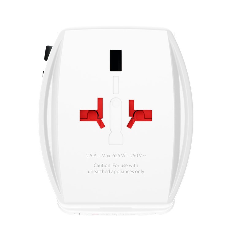 • Kompakter Universal-Reiseadapter mit Steckdoseneingang für Elektrogeräte in Europa (Eurostecker Typ C), UK (Typ G), USA/Japan (Typ A) oder Australien/China (Typ I)