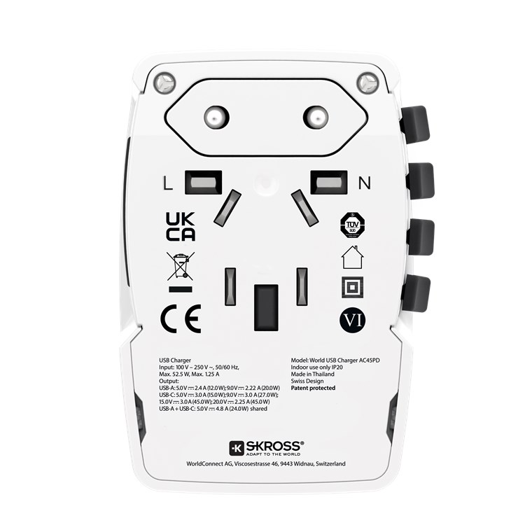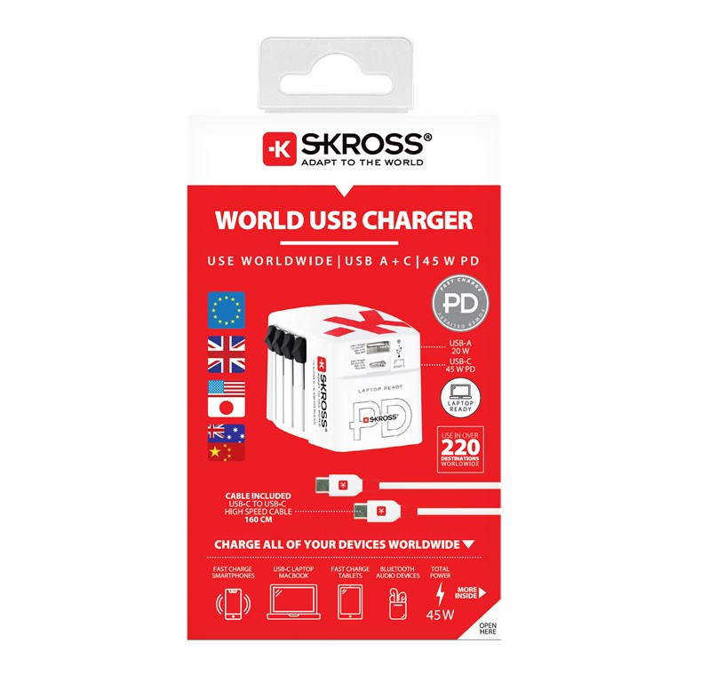 Weiterführende Links zu "Skross 75254 Reiseadapter World USB Charger AC45PD VPE Retail Box Mindestbestellmenge 1"