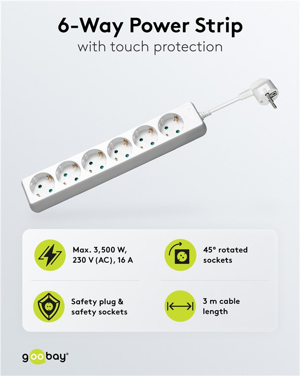 Weiterführende Links zu "Goobay 51079 Steckdosenleiste 6-fach, 3 m, weiß VPE Retail Polybag Mindestbestellmenge 1"