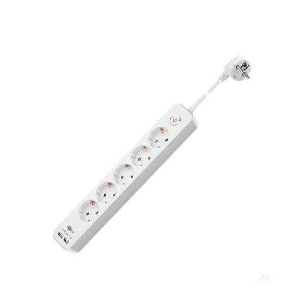 • Praktische Mehrfachsteckdose mit 1,5 m Kabellänge, ausgestattet mit 2x USB-Ladeports für 2,1 A Gesamtladestrom.