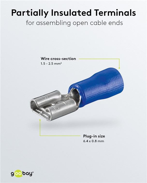 Flachsteckhülse, blau Farbversion: Blau Steckmaß: 6,4 mm x 0,8 mm, zugelassen bis 15 A •... mehr