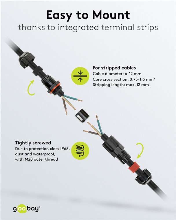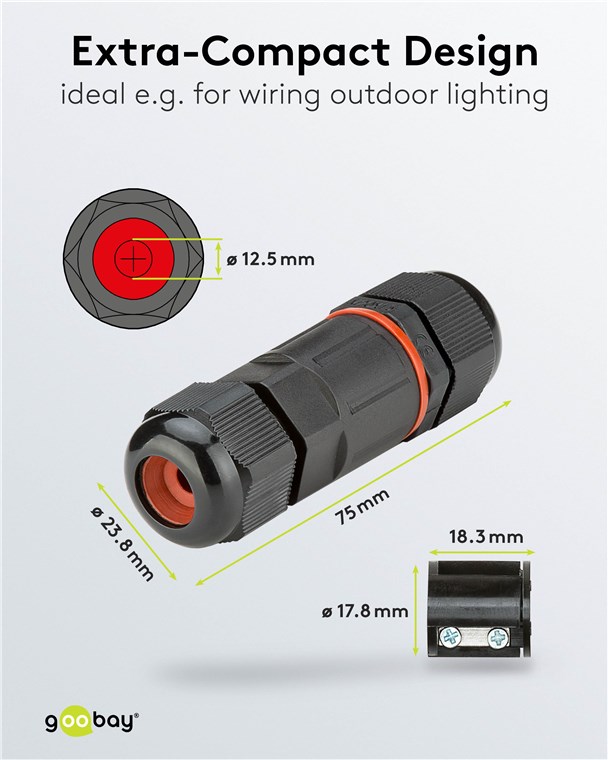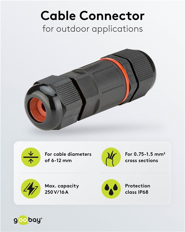 Weiterführende Links zu "Goobay 81325 Kabelverbindungsstück 7,5 cm IP68 VPE Retail Polybag Mindestbestellmenge 1"