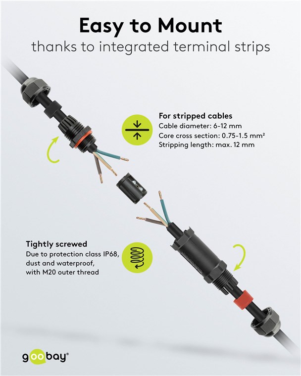 • Dank Schutzart IP68 ist der Kabelverbinder wasserdicht und staubgeschützt