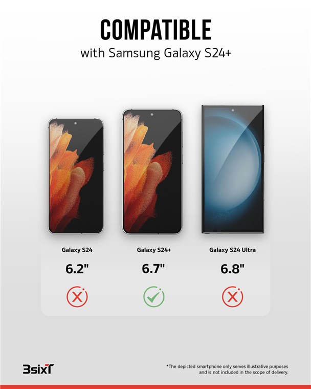 Case, Displayschutz, Kameraschutz und Stressfrei-Applikator, kompatibel mit Samsung Galaxy S24+, transparent