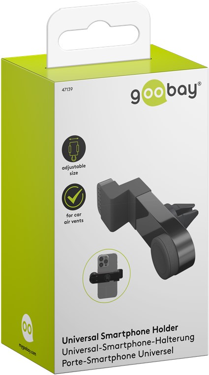 • Die Goobay Handyhalterung fürs Auto lässt sich durch die Quick-Snap-Technologie einfach und stabil an der Lüftung anbringen.