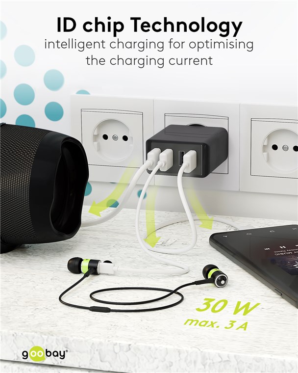 Weiterführende Links zu "Goobay 44953 USB-A Multiport-Ladegerät (30 W) schwarz VPE Retail Polybag Mindestbestellmenge 1"