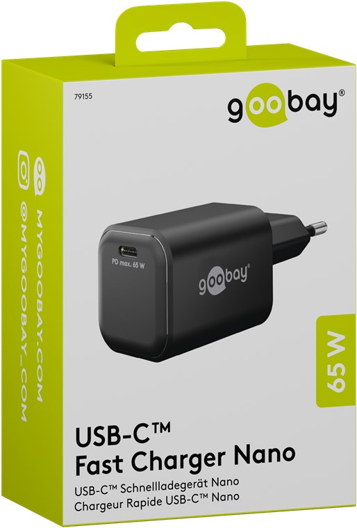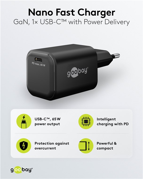 Weiterführende Links zu "Goobay 79155 USB-C™ PD GaN Schnellladegerät Nano (65 W) schwarz VPE Retail Box Mindestbestellmenge 1"
