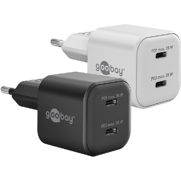 Weiterführende Links zu "Goobay 75334 USB-C™ PD GaN Dual-Schnellladegerät Nano (35 W) weiß VPE Retail Polybag Mindestbestellmenge 1"