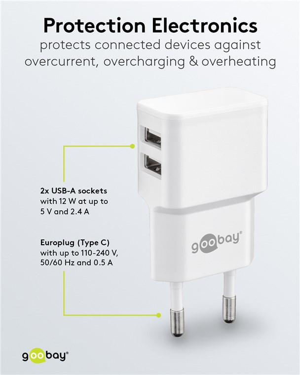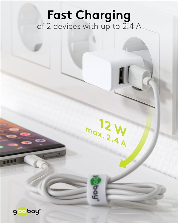 Weiterführende Links zu "Goobay 44952 USB-A Dual-Ladegerät (12 W) weiß VPE Retail Polybag Mindestbestellmenge 1"