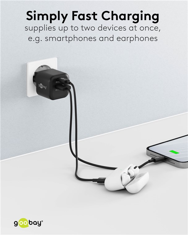 Goobay 61673 USB-C™ PD Dual-Schnellladegerät (30 W) schwarz VPE Retail Polybag Mindestbestellmenge 1