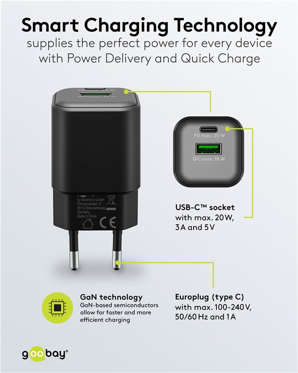Weiterführende Links zu "Goobay 65864 USB-C™ PD GaN Dual-Schnellladegerät Nano (20 W) schwarz VPE Retail Polybag Mindestbestellmenge 1"
