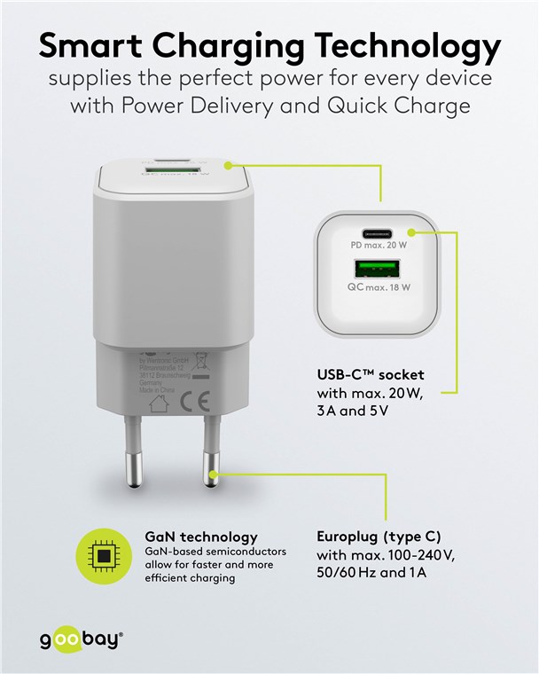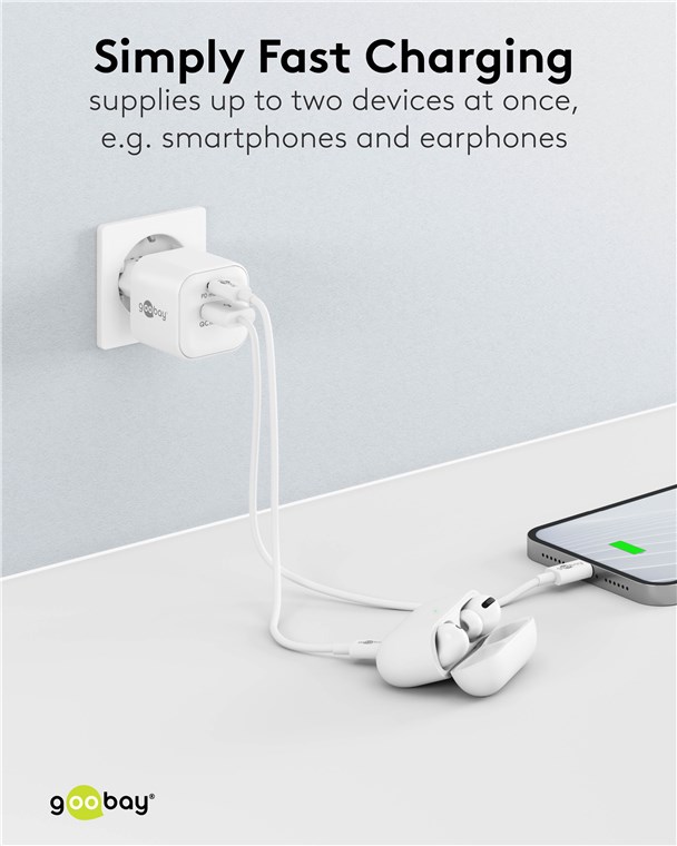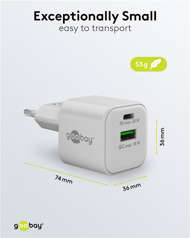 Weiterführende Links zu "Goobay 65865 USB-C™ PD GaN Dual-Schnellladegerät Nano (20 W) weiß VPE Retail Polybag Mindestbestellmenge 1"