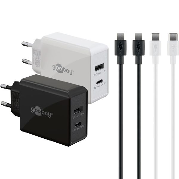 Weiterführende Links zu "Goobay 79644 Twin Power Set 2x USB-C™-Ladegeräte (30 W), 2x USB-C™-Kabel VPE Retail Polybag Mindestbestellmenge 1"
