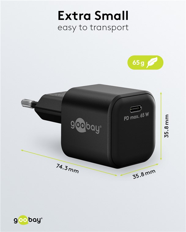 Weiterführende Links zu "Goobay 65369 USB-C™ PD GaN Schnellladegerät Nano (65 W) schwarz VPE Retail Polybag Mindestbestellmenge 1"