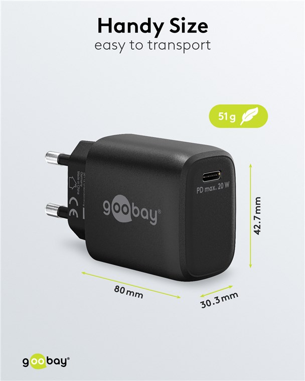 Produktinformationen "Goobay 65405 USB-C™ PD GaN Schnellladegerät (20 W) schwarz VPE Retail Polybag Mindestbestellmenge 1"