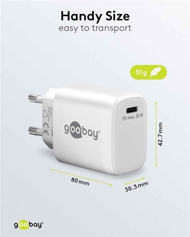 Goobay 76691 USB-C™ PD GaN Schnellladegerät Nano (20 W) weiß VPE Retail Box Mindestbestellmenge 1