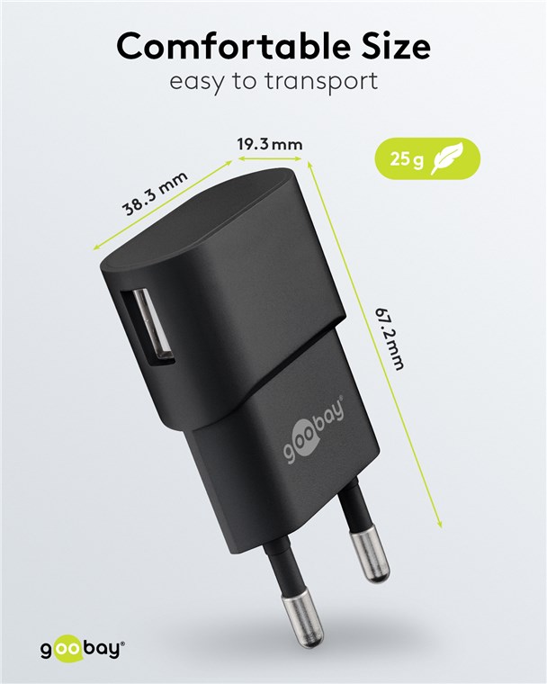 • Das Goobay-USB-Ladegerät verfügt über 1x USB-A-Anschluss mit 5 W Leistung.
