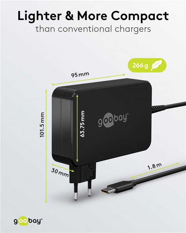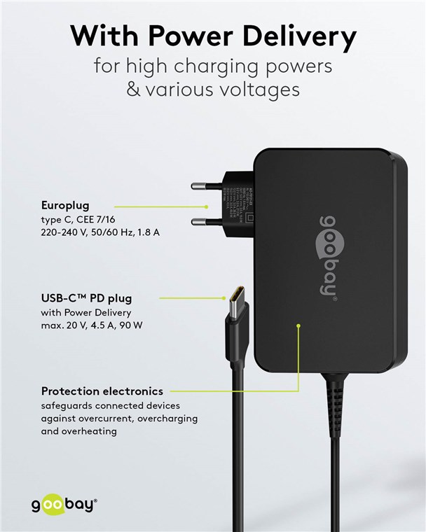 Produktinformationen "Goobay 65420 USB-C™-Ladegerät für Laptops (90 W) schwarz VPE Bulk Mindestbestellmenge 1"