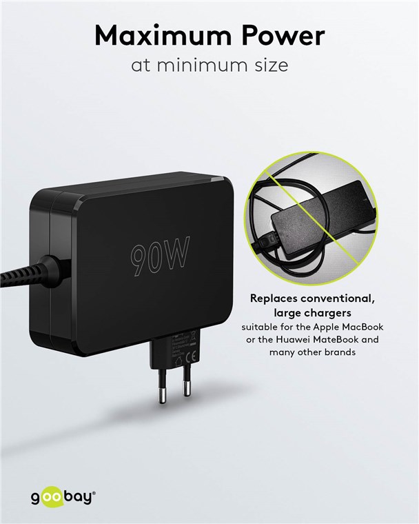 Ein Netzteil von echtem Format! Das kompakte, leichte Steckernetzteil ist der ultimative Begleiter für das mobile Leben: Mit maximaler Leistung bei minimaler Größe lädt es selbst Hochleistungs-Notebooks schnell und zuverlässig mit bis zu 90 W. Durch den universellen USB-C™-Anschluss ist es für viele neuere Laptops geeignet, z. B. das Apple MacBook oder das Huawei MateBook.