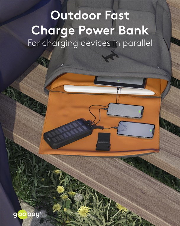 Weiterführende Links zu "Goobay 53934 Outdoor Solar-Powerbank 20.000 mAh mit Power Delivery VPE Retail Box Mindestbestellmenge 1"