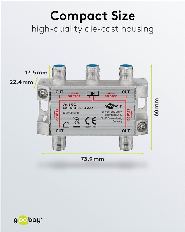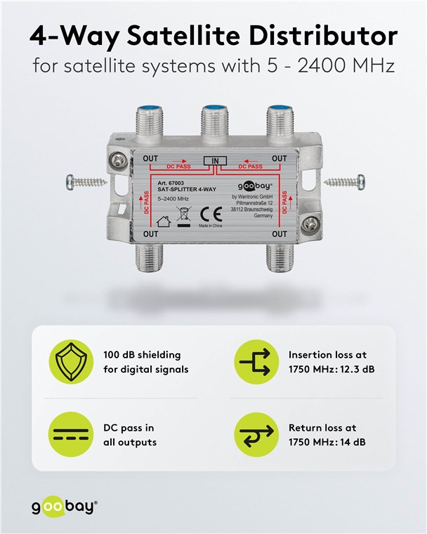Produktinformationen "Goobay 67003 SAT-Verteiler, 4-fach VPE Bulk Mindestbestellmenge 1"