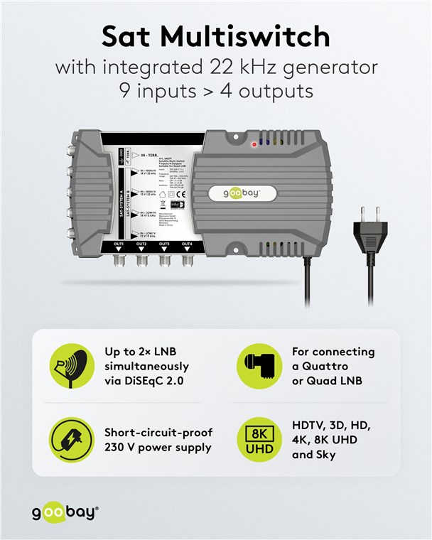 Produktinformationen "Goobay 64879 Sat-Multischalter 9 Eingänge/4 Ausgänge VPE White Box with Label Mindestbestellmenge 1"