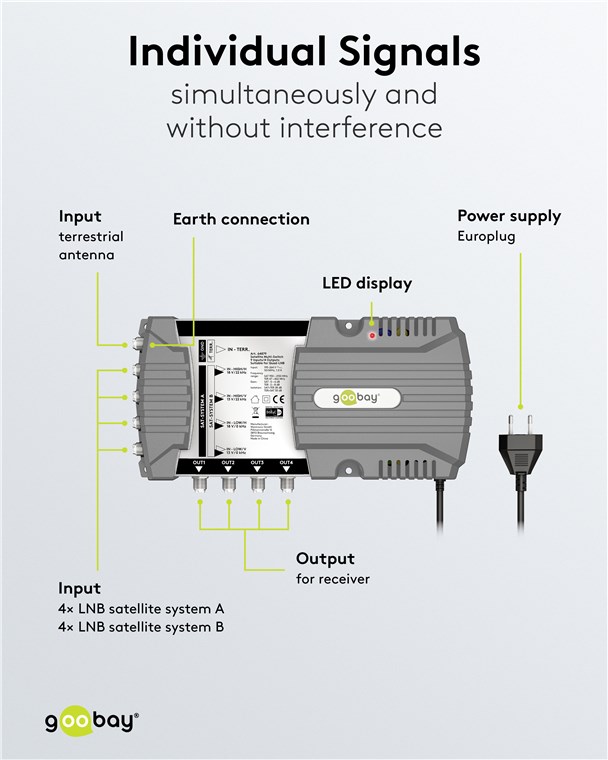 • Ermöglicht allen am Multiswitch angeschlossenen Teilnehmern ein individuelles Empfangssignal - gleichzeitig und störungsfrei