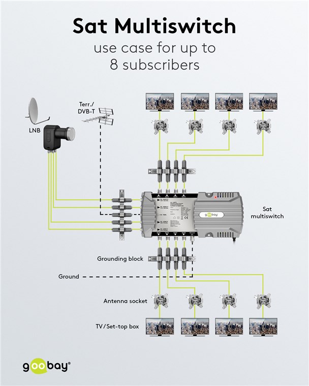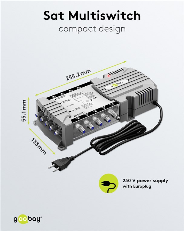 Produktinformationen "Goobay 64874 Sat-Multischalter 5 Eingänge/8 Ausgänge VPE White Box with Label Mindestbestellmenge 1"