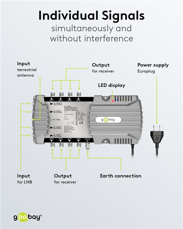 • Ermöglicht allen am Multiswitch angeschlossenen Teilnehmern ein individuelles Empfangssignal - gleichzeitig und störungsfrei