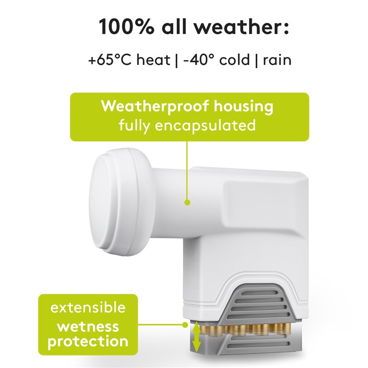 • Zusätzlicher Schutz der vergoldeten F-Anschlüsse durch ausziehbaren Nässeschutz