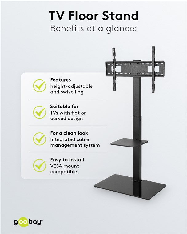 Weiterführende Links zu "Goobay 58526 TV-Bodenständer Basic (Größe L) VPE Retail Box Mindestbestellmenge 1"