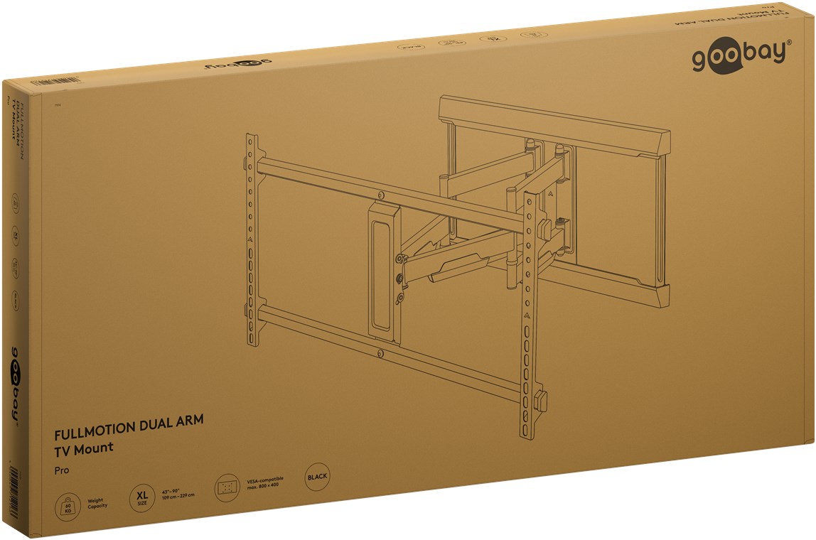 Weiterführende Links zu "Goobay 71216 TV-Wandhalterung Pro FULLMOTION (XL) VPE Retail Box Mindestbestellmenge 1"