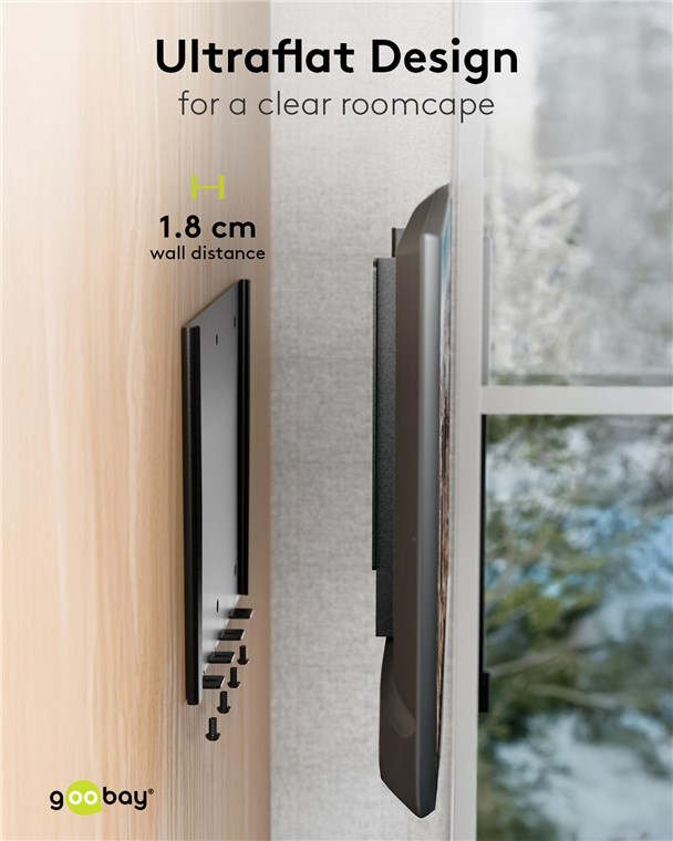 • Mit nur 18 mm Wandabstand ist die TV-Halterung besonders flach und platzsparend an der Wand zu befestigen