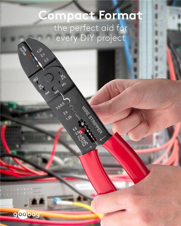 Multifunktions-Zange zum Crimpen, Schneiden und Abisolieren von Kabeln sowie Kürzen von Schrauben