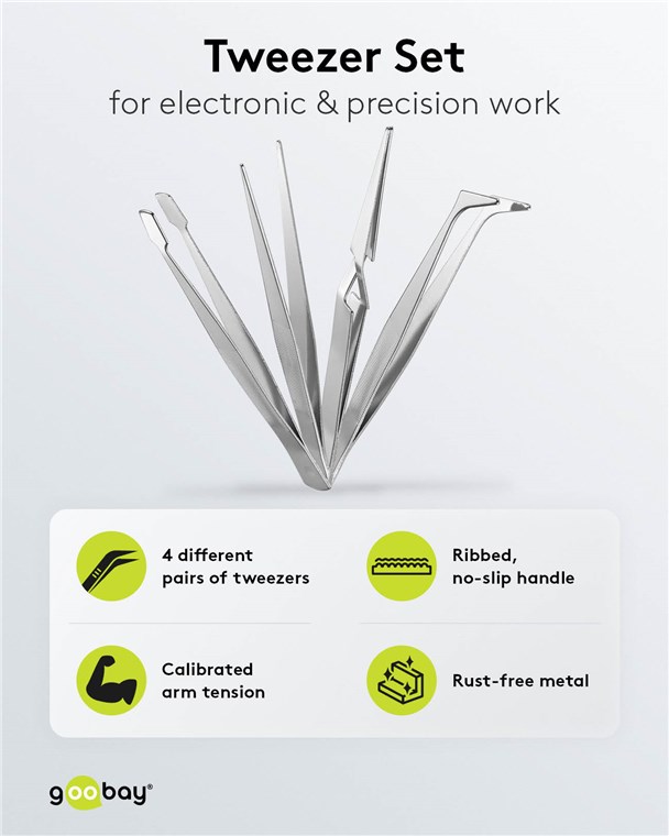 Die Pinzetten sind der perfekte Helfer für alle Präzisionsarbeiten, vom Modellbau bis zur Philatelie. Durch die vielseitigen Formen ist für alle Einsatzzwecke stets die richtige Pinzette griffbereit.