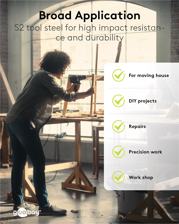• Jeder Bit ist für besondere Stoßfestigkeit aus hochwertigem S2-Werkzeugstahl gefertigt