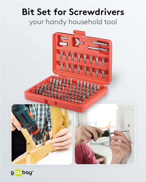 • Das Werkzeug-Set liefert den passenden Bit für alle Schraub-, Montage- und Heimwerkerarbeiten