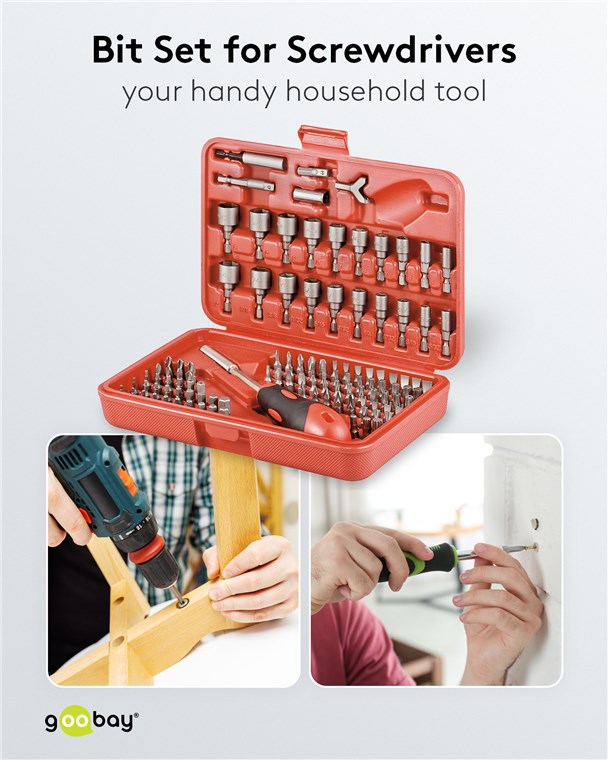 • Das Werkzeug-Set liefert den passenden Bit für viele Schraub-, Montage- und Heimwerkerarbeiten