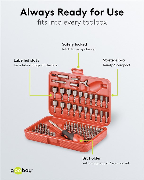 • Durch das praktische, kompakte Format ist der Bitsatz einfach in jedem Werkzeugkoffer zu verstauen und perfekt für den mobilen Einsatz geeignet