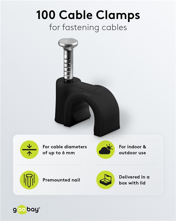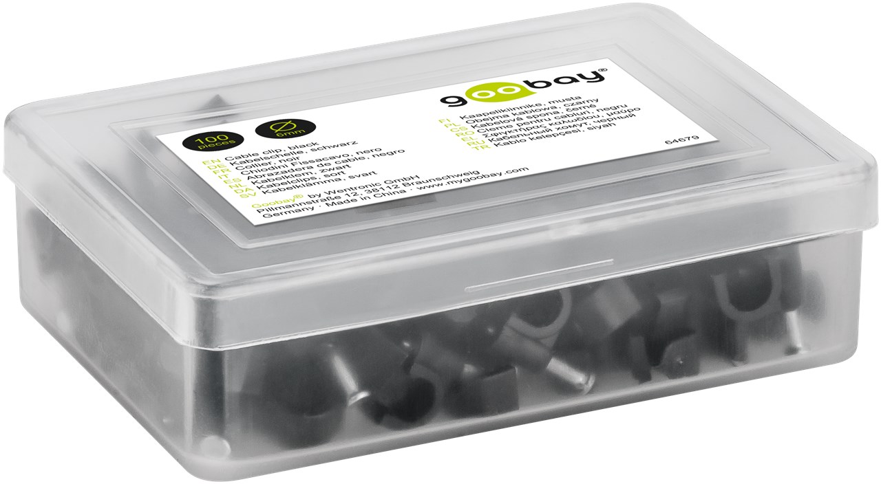 Weiterführende Links zu "Goobay 64679 Kabelschelle 6 mm, schwarz VPE Plastic Box Mindestbestellmenge 1"