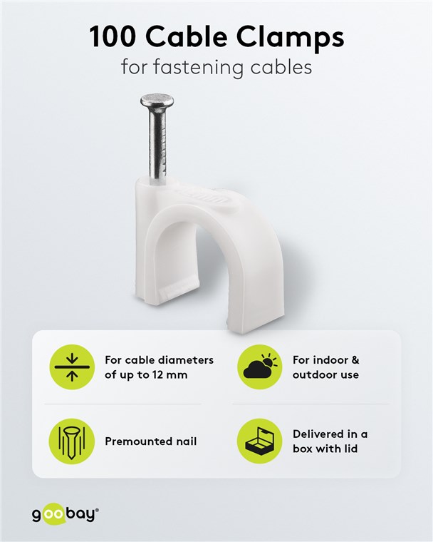 Goobay 17082 Kabelschelle 10 mm, weiß VPE Plastic Box Mindestbestellmenge 1