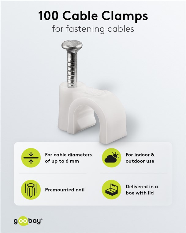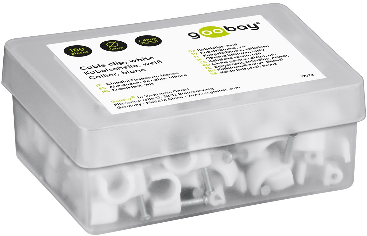 Weiterführende Links zu "Goobay 17078 Kabelschelle 6 mm, weiß VPE Plastic Box Mindestbestellmenge 1"