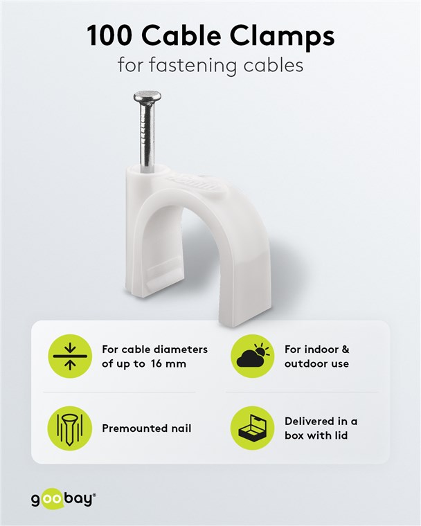 Goobay 17082 Kabelschelle 10 mm, weiß VPE Plastic Box Mindestbestellmenge 1