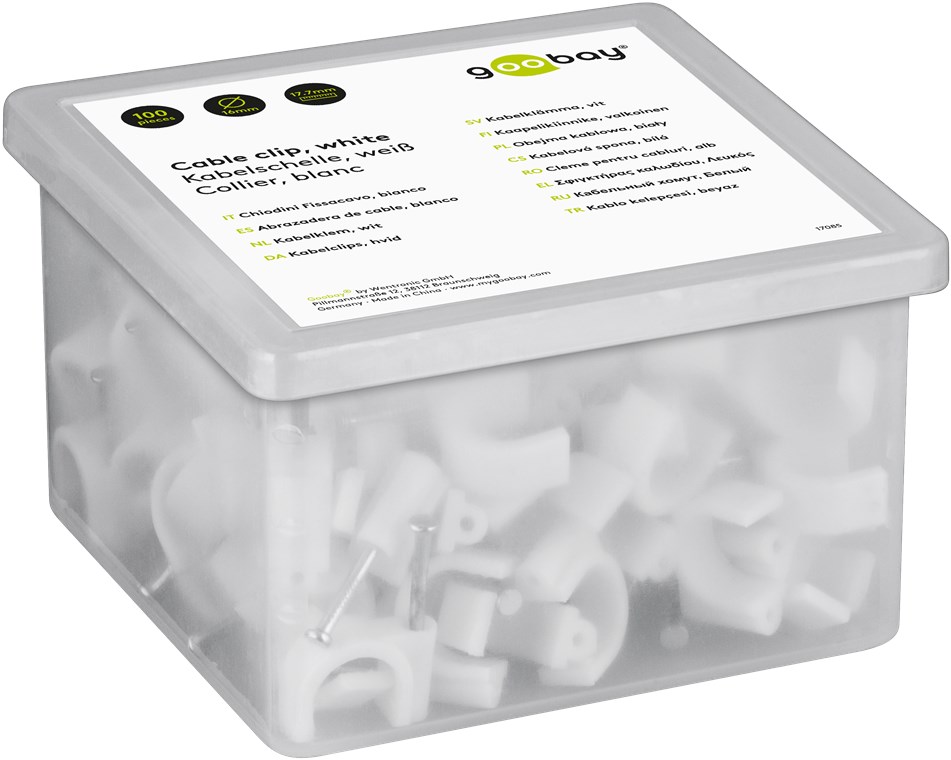 Weiterführende Links zu "Goobay 17085 Kabelschelle 16 mm, weiß VPE Plastic Box Mindestbestellmenge 1"