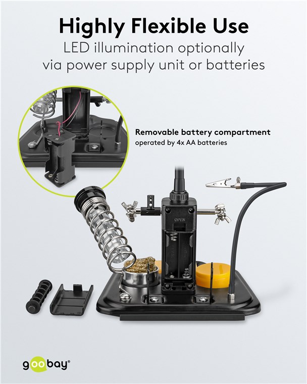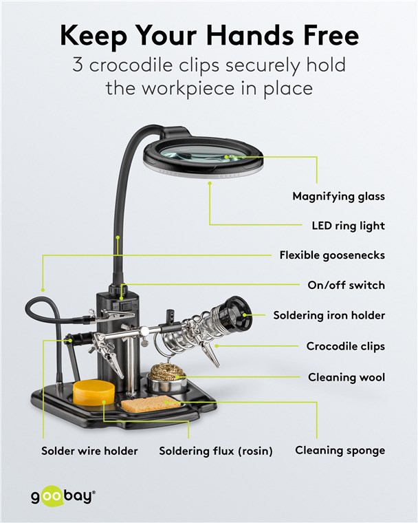 Produktinformationen "Goobay 45241 Löthilfe mit LED-Leuchte & Schwanenhals-Krokodilklemme VPE Retail Box Mindestbestellmenge 1"