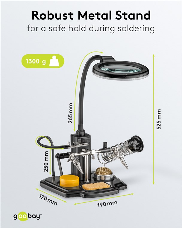 Weiterführende Links zu "Goobay 45241 Löthilfe mit LED-Leuchte & Schwanenhals-Krokodilklemme VPE Retail Box Mindestbestellmenge 1"