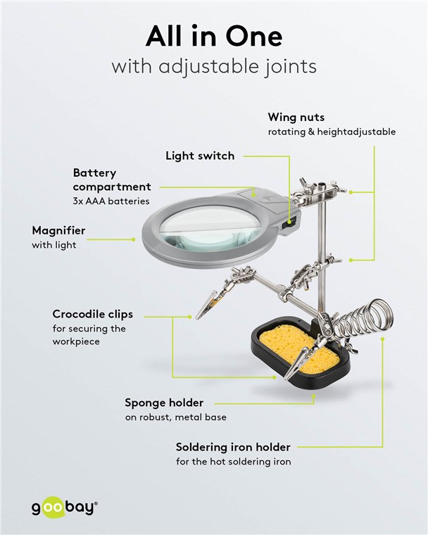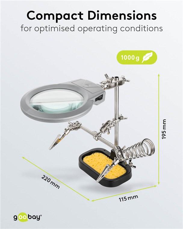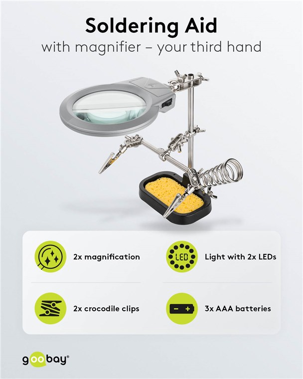 Weiterführende Links zu "Goobay 51226 Löthilfe mit Lupe - dritte Hand VPE Retail Box Mindestbestellmenge 1"
