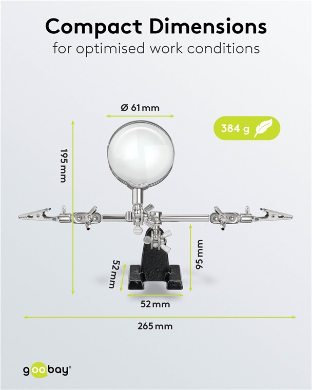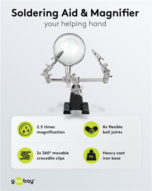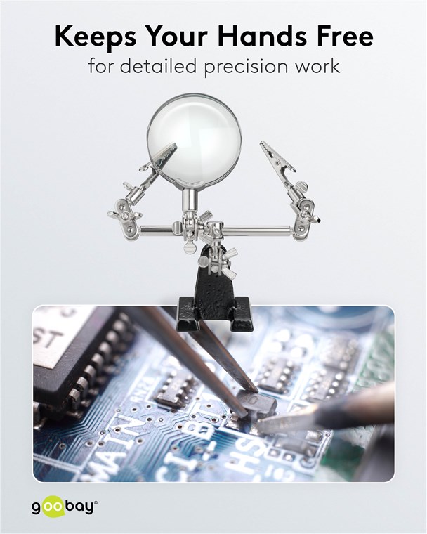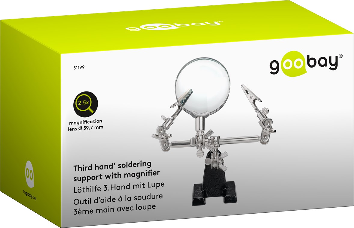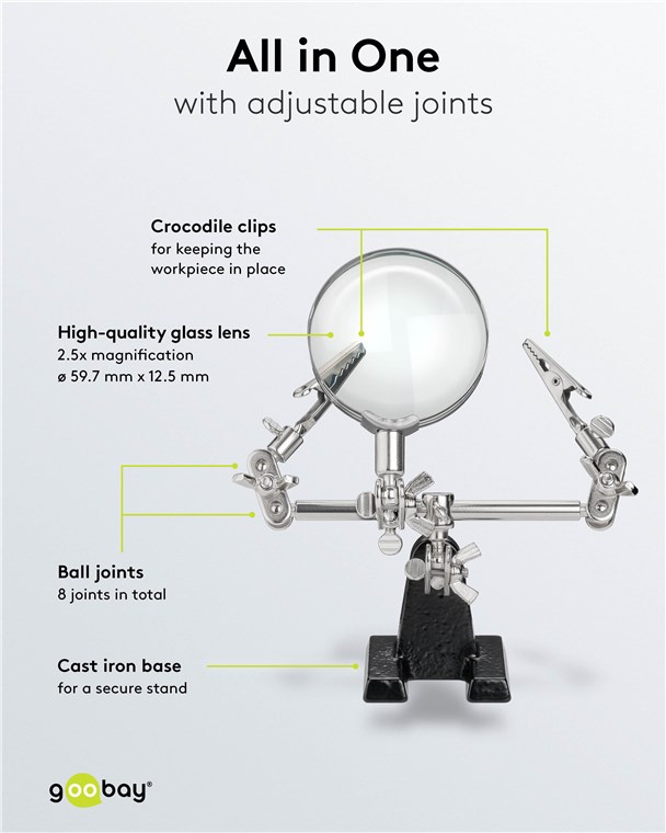 Weiterführende Links zu "Goobay 51199 Dritte Hand mit Lupe und 2,5-facher Vergrößerung VPE Retail Box Mindestbestellmenge 1"