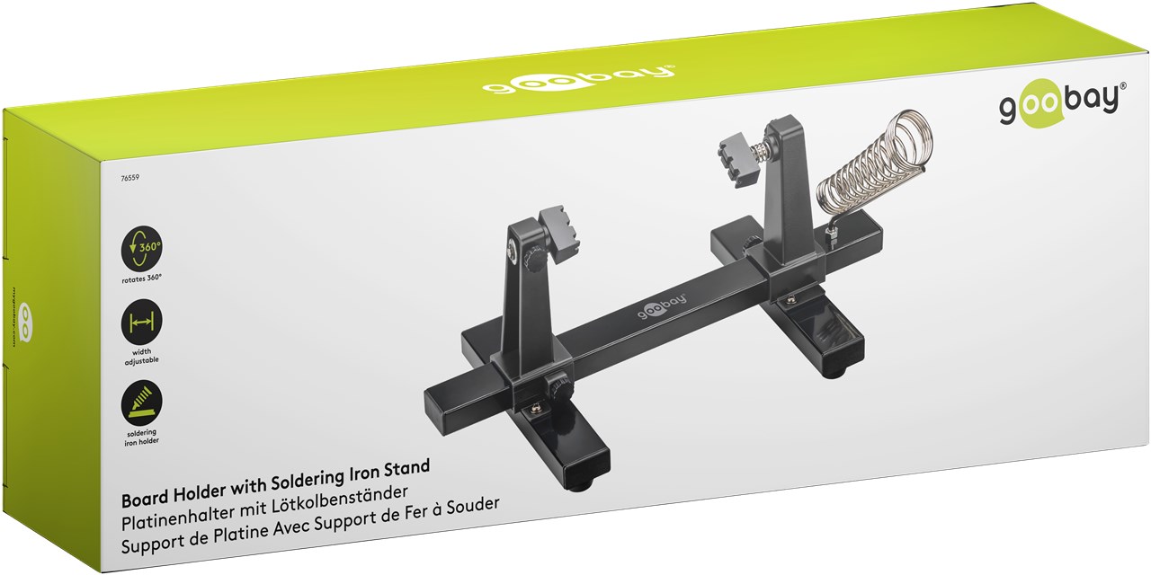Weiterführende Links zu "Goobay 76559 Platinenhalter mit Lötkolbenständer VPE Retail Box Mindestbestellmenge 1"