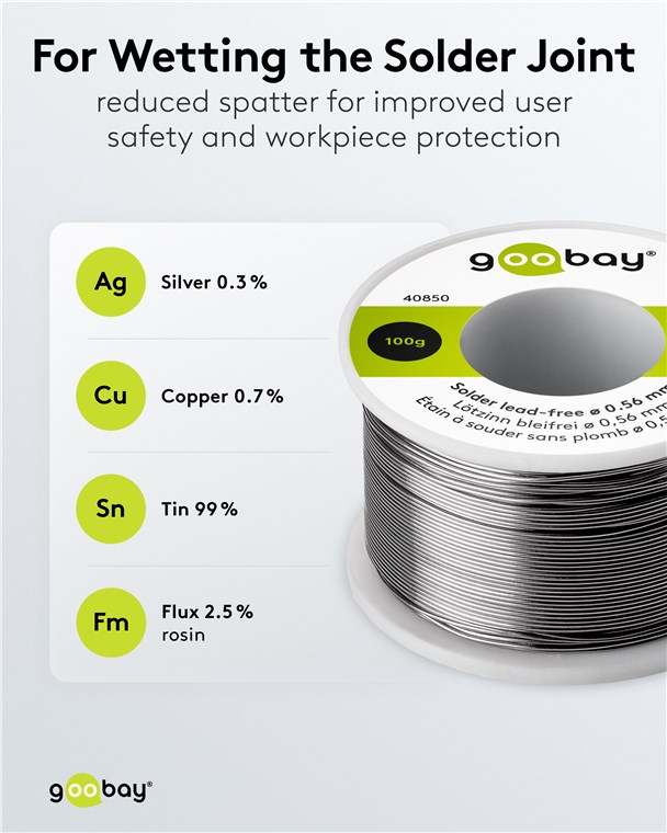Produktinformationen "Goobay 40850 Lötzinn bleifrei, ø 0,56 mm, 100 g VPE Bulk Mindestbestellmenge 1"